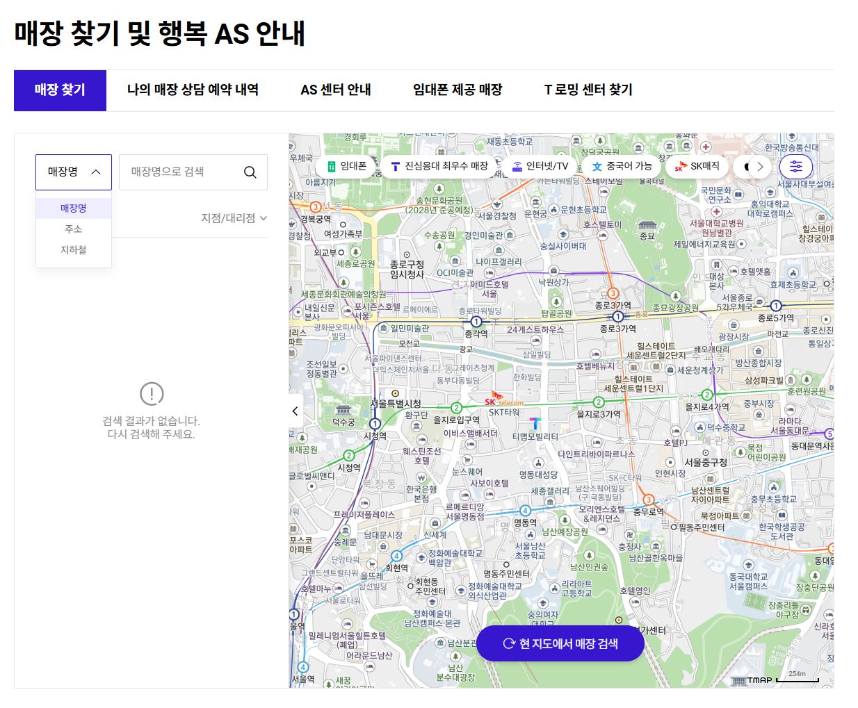 SK텔레콤 T월드 매장 찾기(SK텔레콤 매장 찾기 및 행복 AS 안내 바로가기)