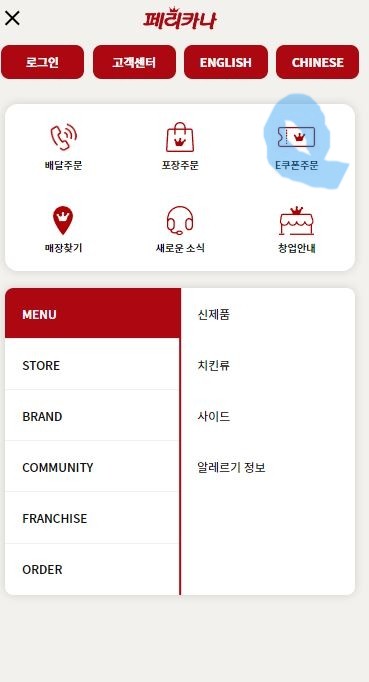 - 페리카나 홈페이지에서 주문하는 방법