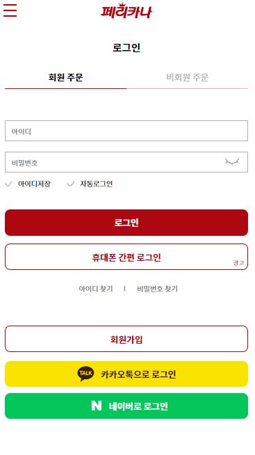 - 페리카나 홈페이지에 접속하여 회원가입